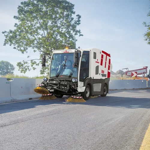 HP4000 is the mechanical and vacuum street sweeping machine designed for cleaning urban areas, maintaining warehouses or parking lots, and due to its low water consumption, it is particularly suitable for cleaning industrial structures and cement plants with large amounts of dust. Its design ensures that no element touches the ground so that it sweeps effectively over uneven ground, near bumps and pavements, or where there are roots of pine trees and manhole covers.