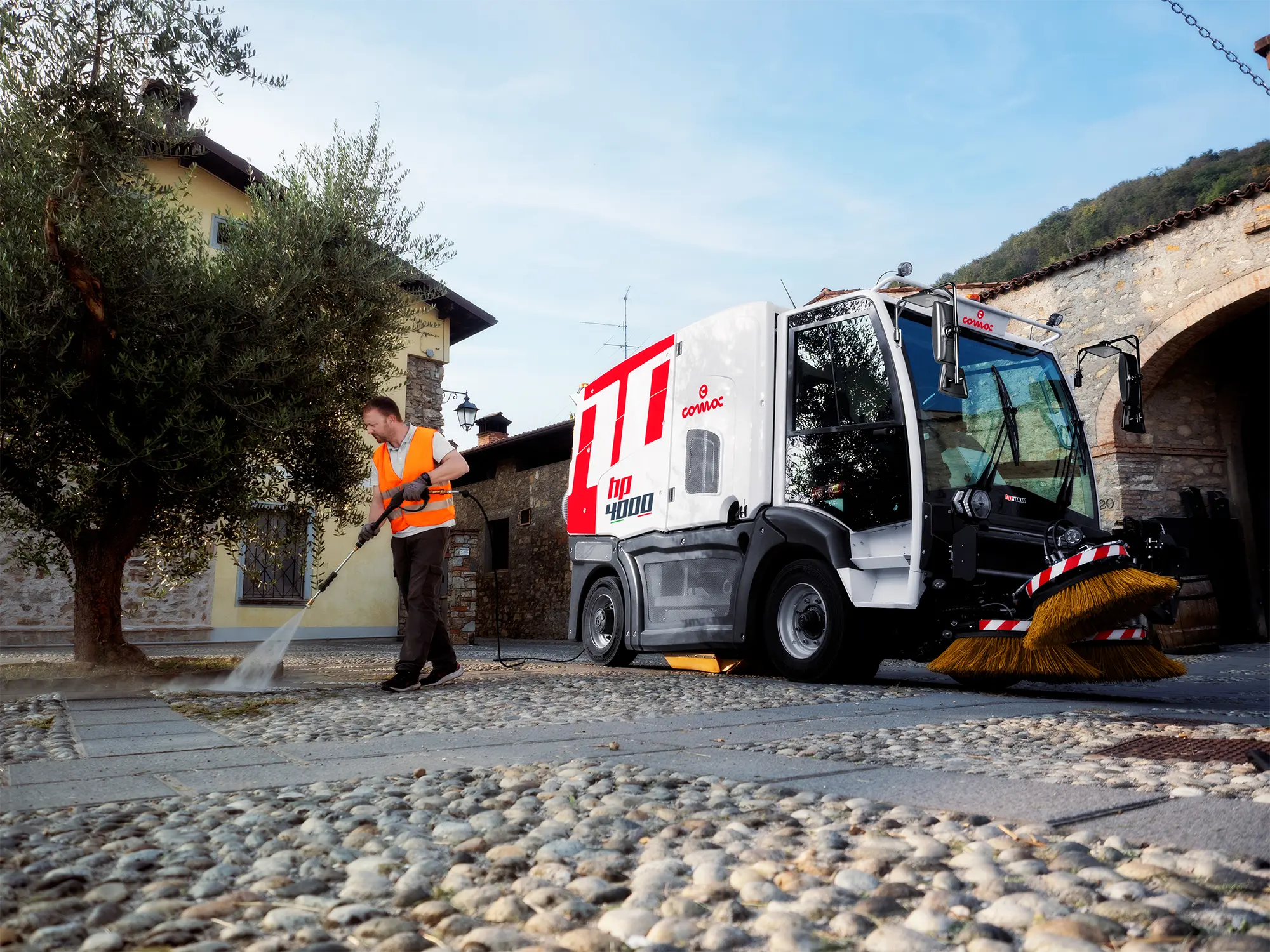 - Great manoeuvrability, even near walls or fences, provides the HP4000 with ease of handling to operate in places where space is limited such as historical town centers or cluttered areas, at the same time guaranteeing maximum vehicle stability during transfer even at the highest speed