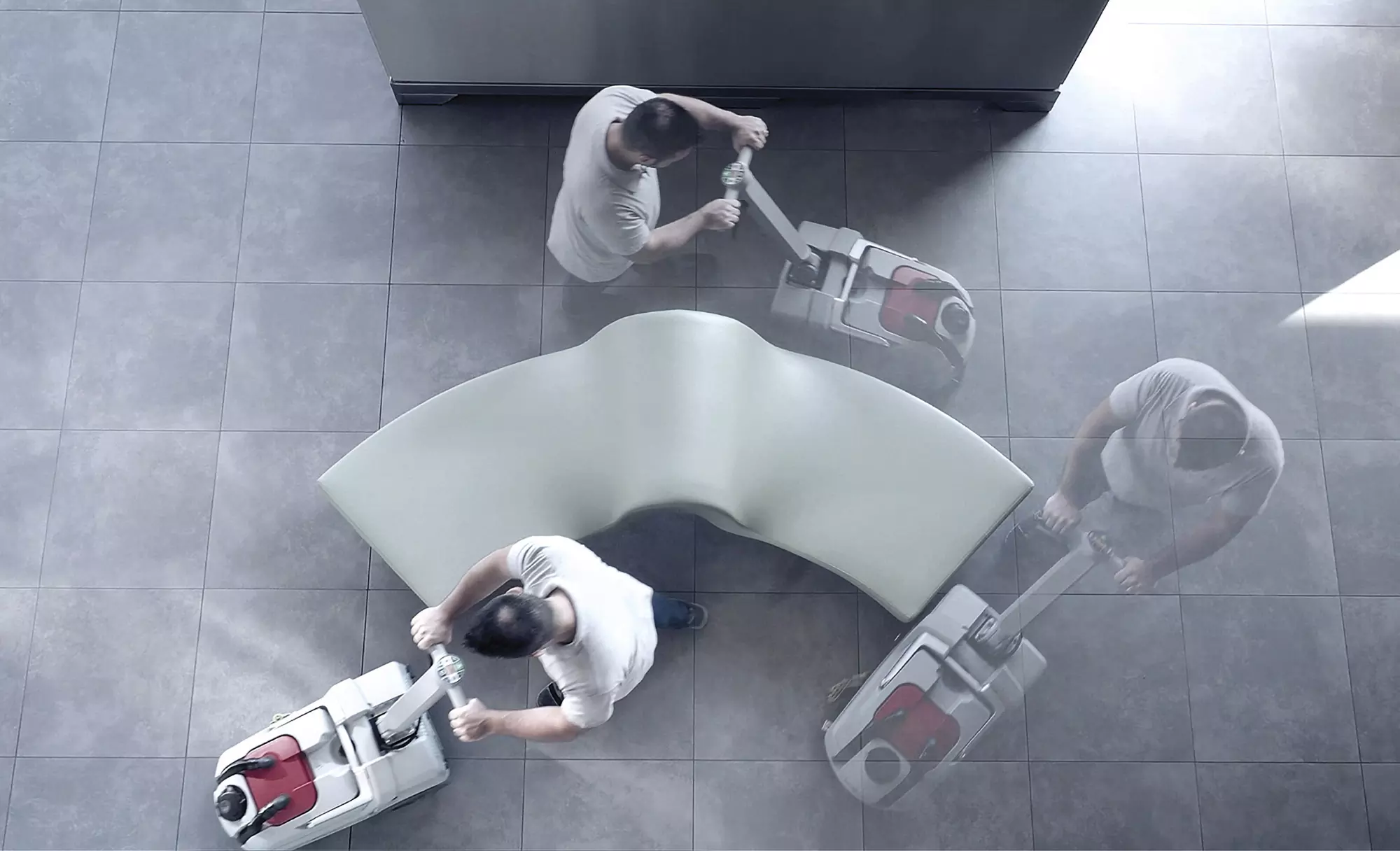 - The handlebars can be completely closed towards the machine body, enabling the scrubbing machine to be put away even in a small space