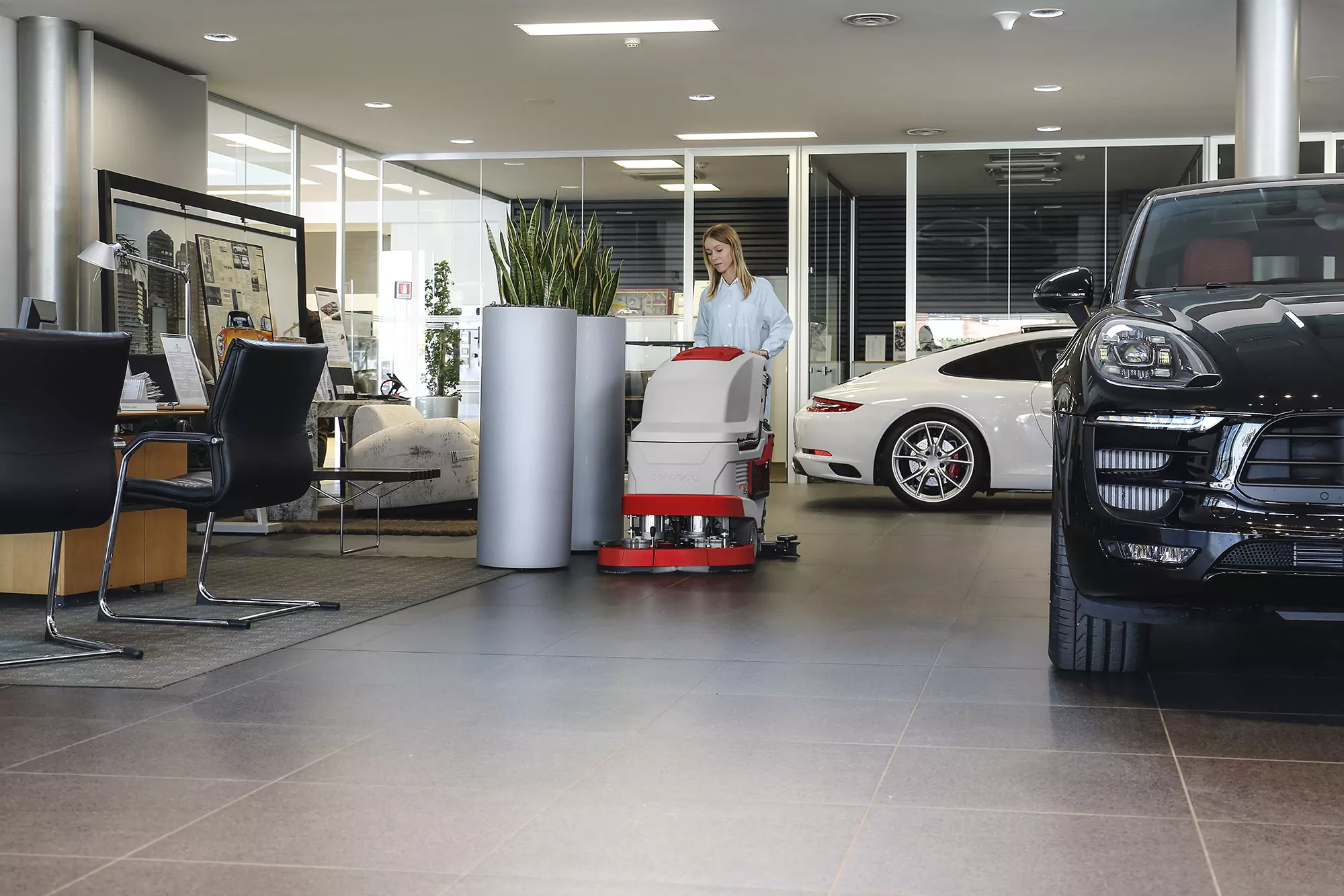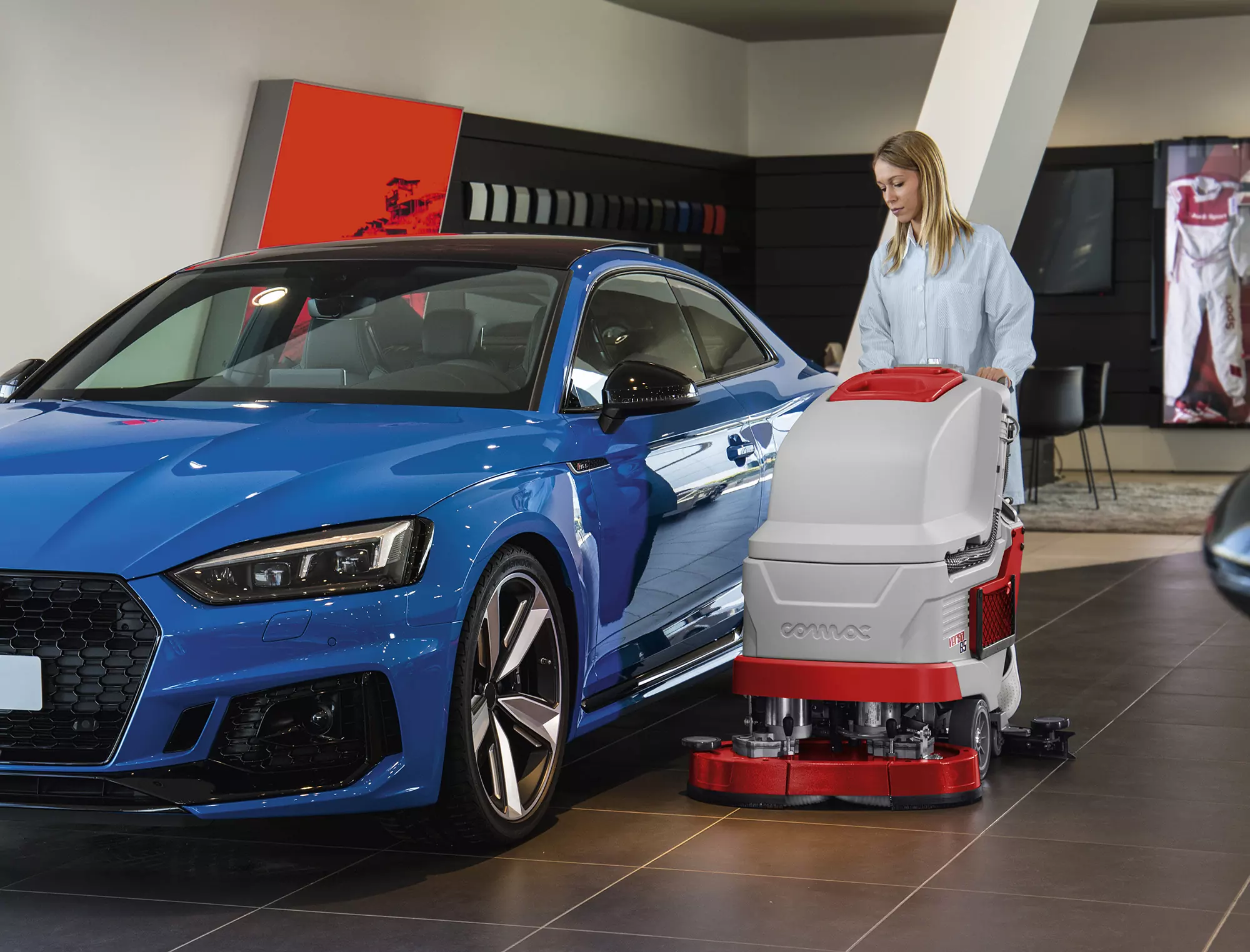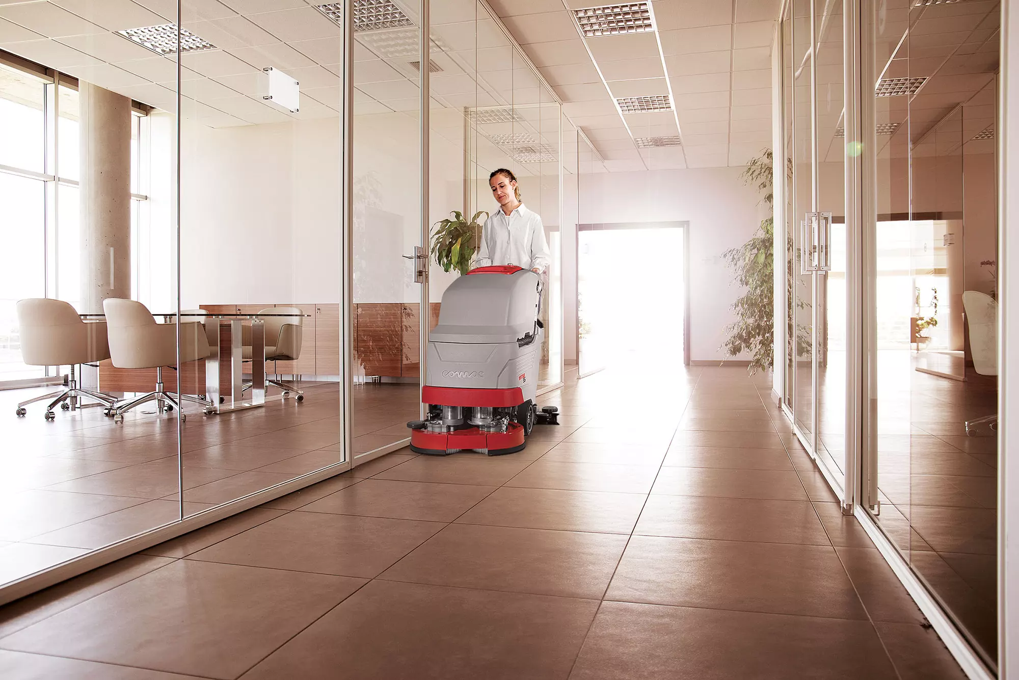 Equipped with the power needed to work even in difficult situations, Versa allows excellent cleaning results in environments like supermarkets, public buildings, hospitals, warehouses, car showrooms, workshops and production facilities. Its technical characteristics and functions make it a professional scrubber dryer suitable for maintenance and heavy duty cleaning of floors up to 3200 sq.m.