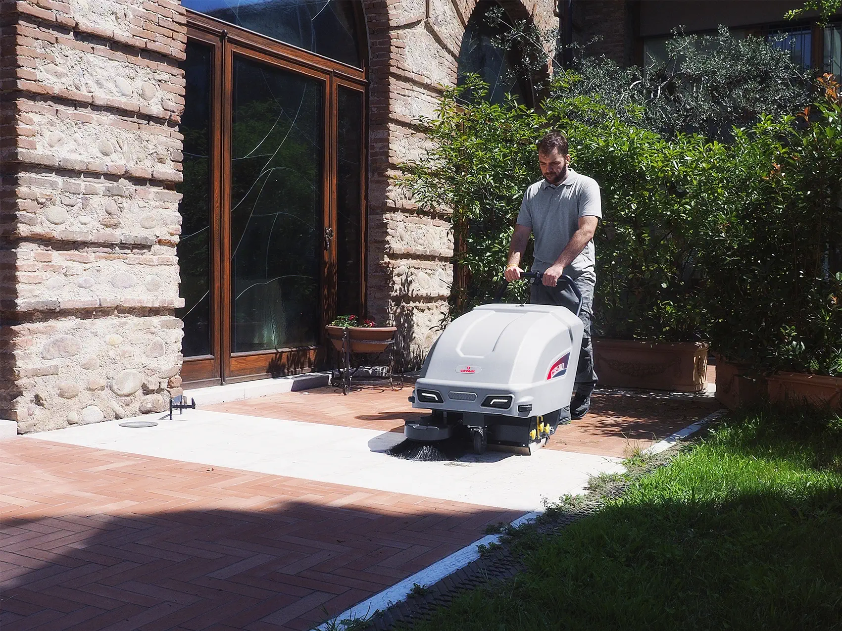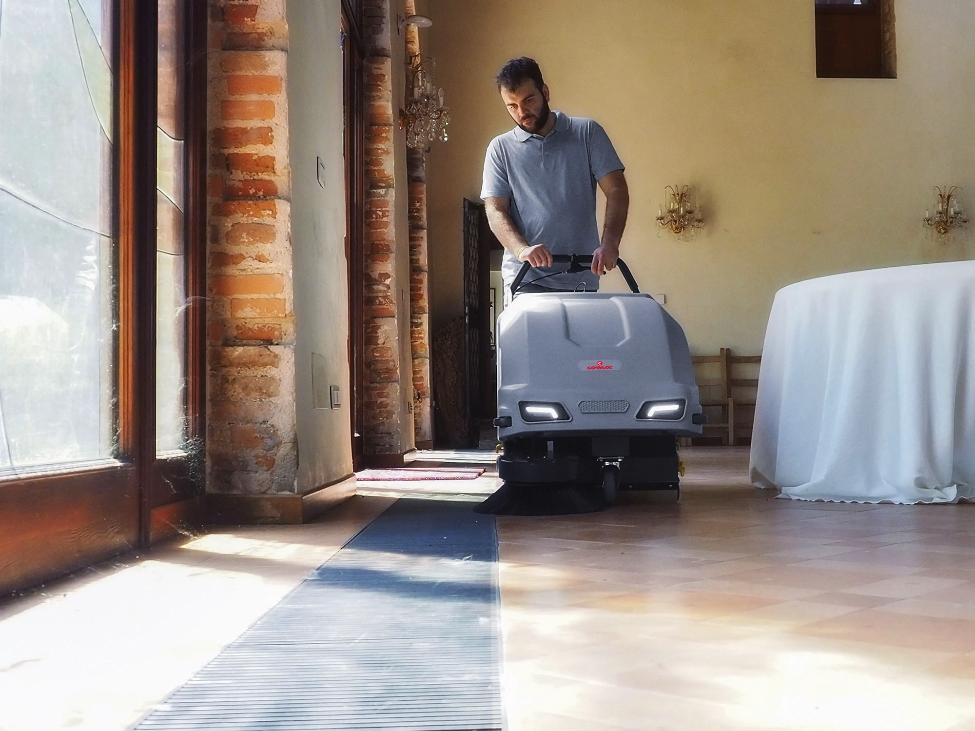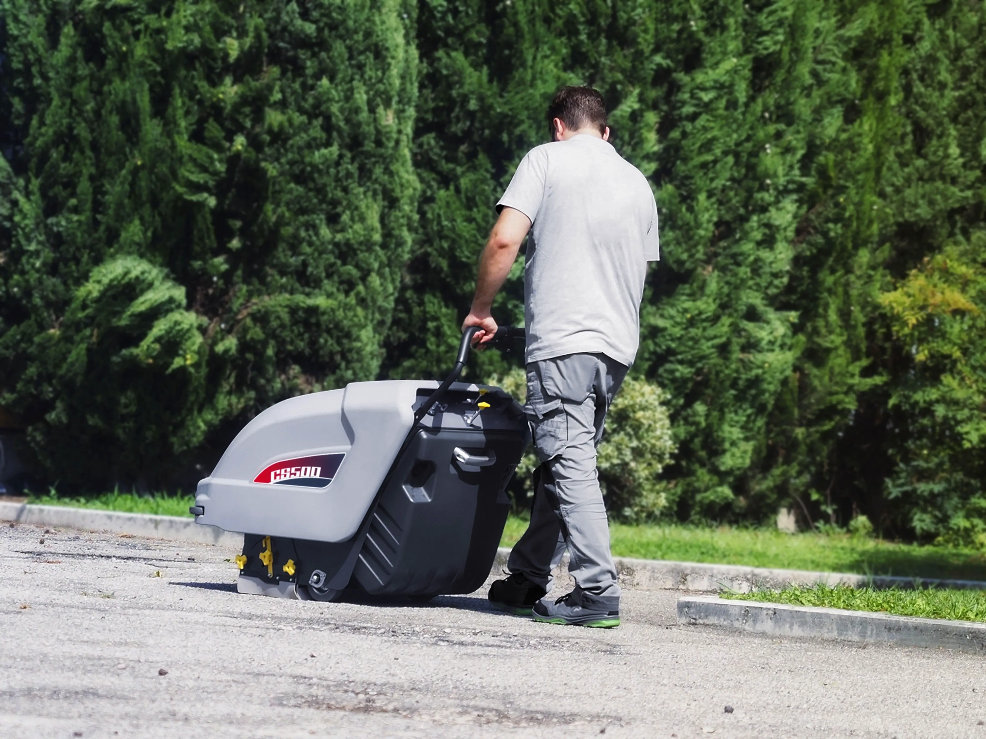CS500 is a small walk-behind sweeping machine; it is practical and compact yet powerful and precise when cleaning surfaces. This small battery-powered sweeper simplifies cleaning operations, courtesy of its excellent performance levels which enable the productivity of those who use it to be increased.