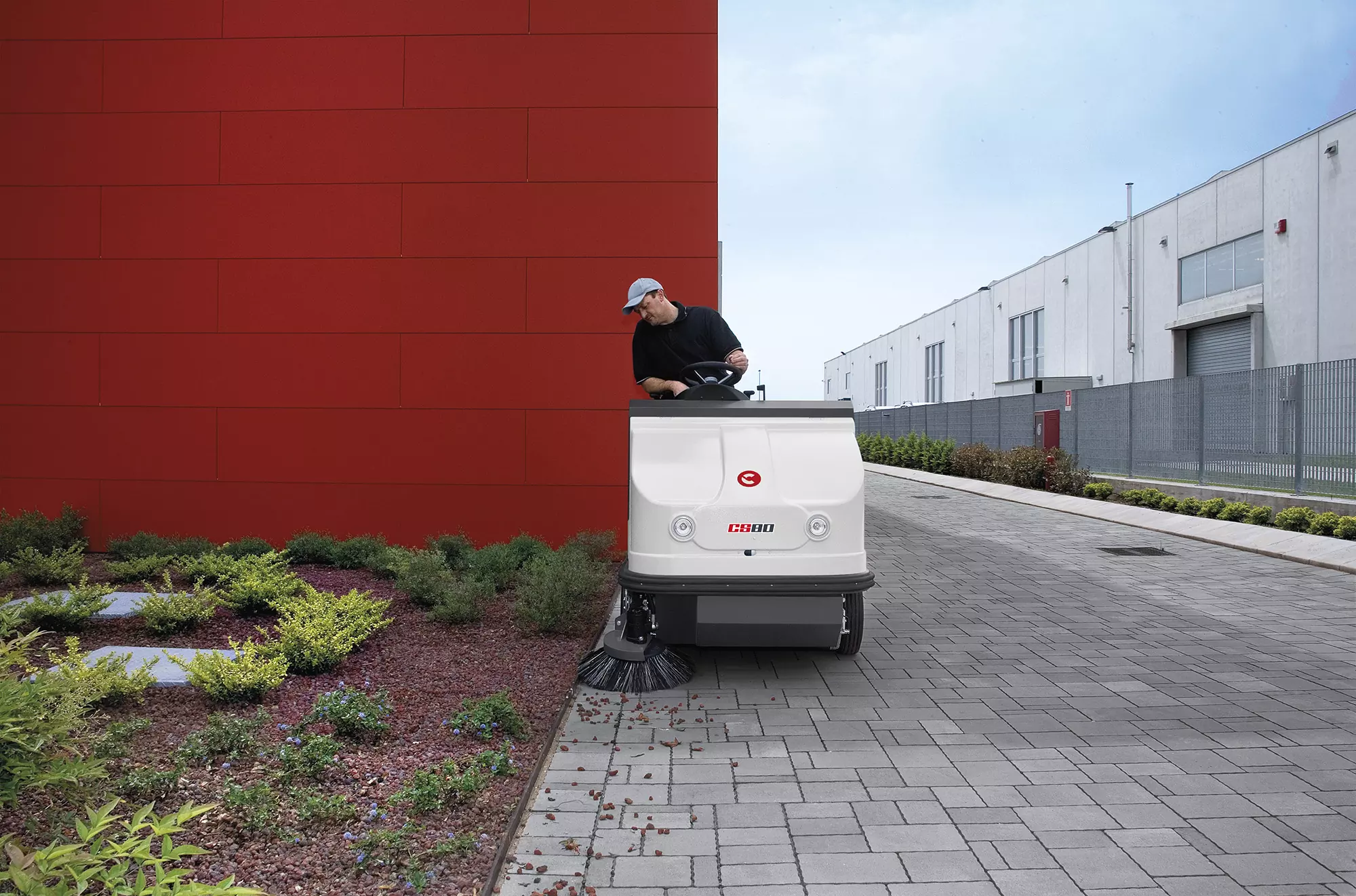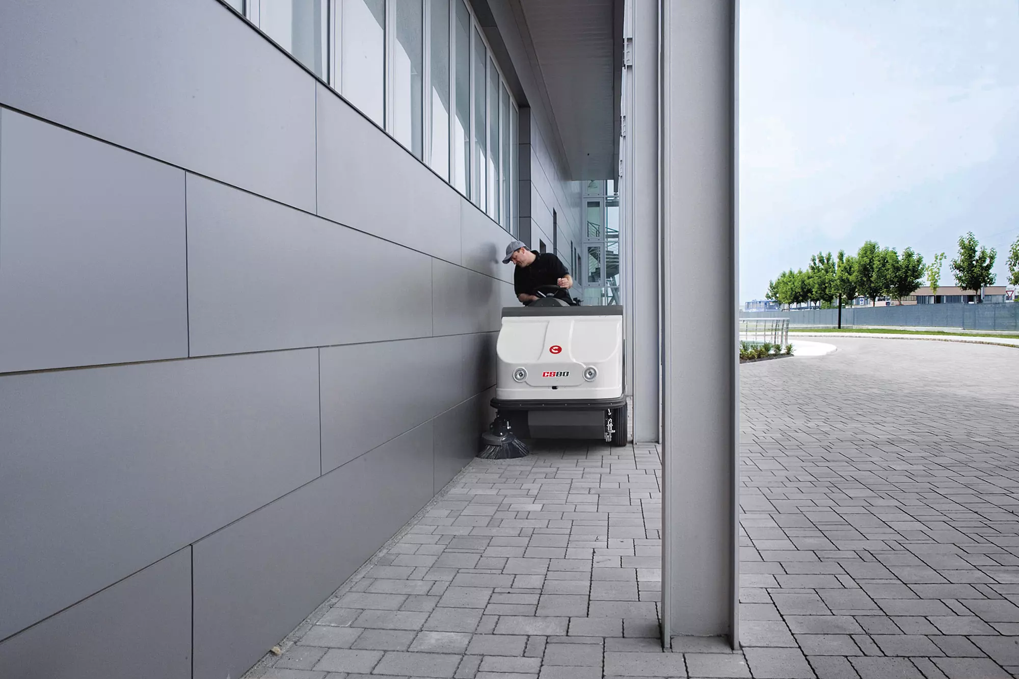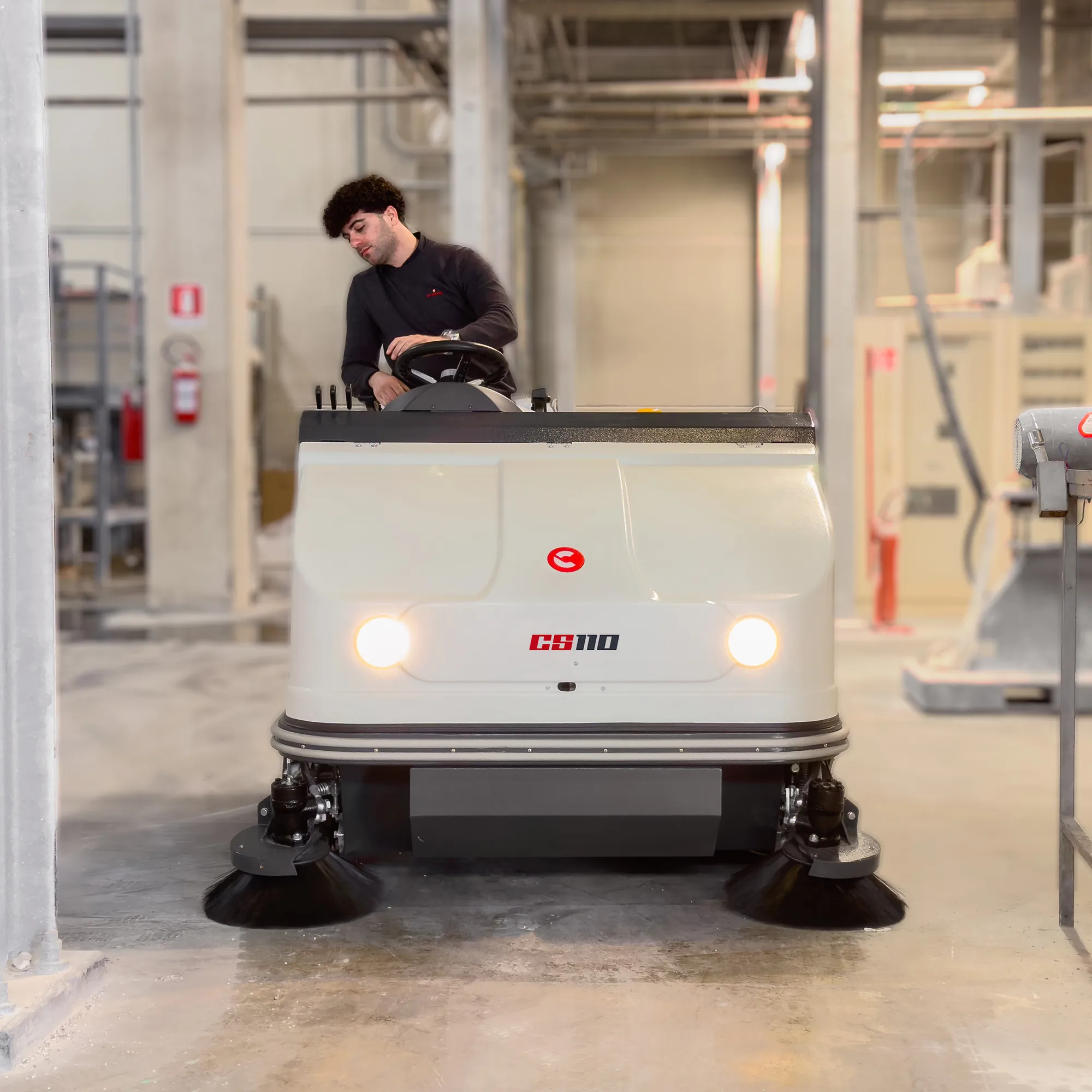 Le spazzatrici industriali uomo a bordo CS80/CS90/CS110 sono tra le più compatte della loro categoria. Grazie al loro telaio scatolato costruito intorno alla spazzola centrale hanno dimensioni estremamente contenute, e nello stesso tempo risultano essere molto robuste. Questo rende estremamente versatili le spazzatrici CS80/CS90/CS110 che possono essere impiegate sia per la pulizia delle grandi superfici che in passaggi ristretti o ingombrati.