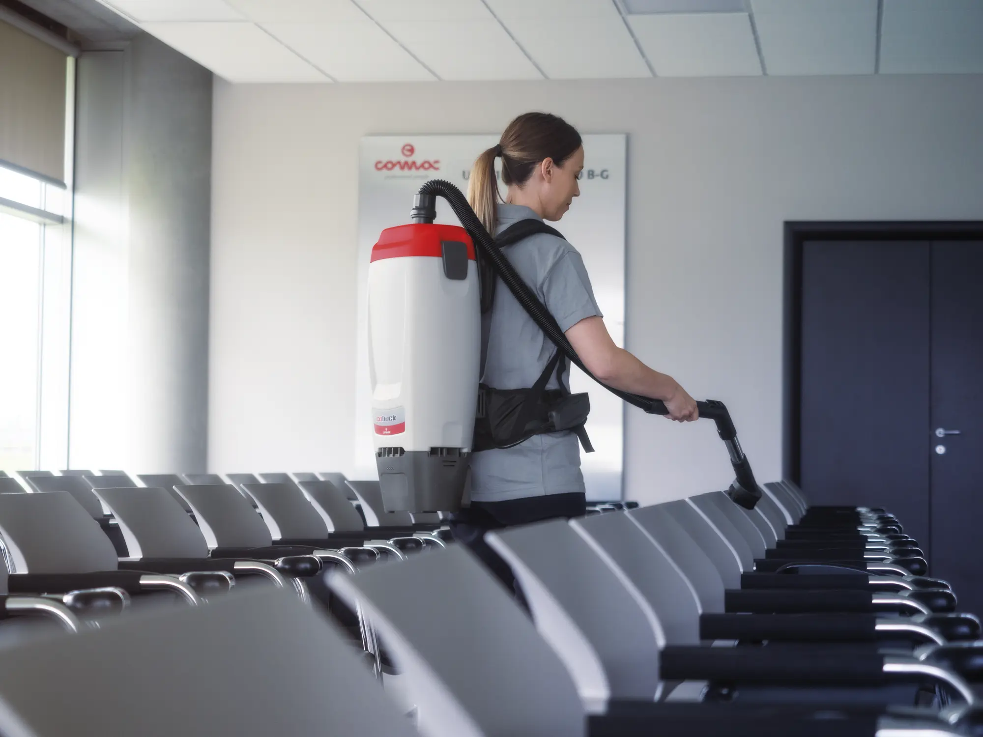 CA BACK to lekki odkurzacz plecakowy firmy Comac, łatwy w obsłudze i o dużej mocy, opracowany, aby w łatwy sposób czyścić także trudno dostępne miejsca. Ten odkurzacz plecakowy został zaprojektowany tak, aby był praktyczny i zapewniał swobodę ruchów użytkownika.