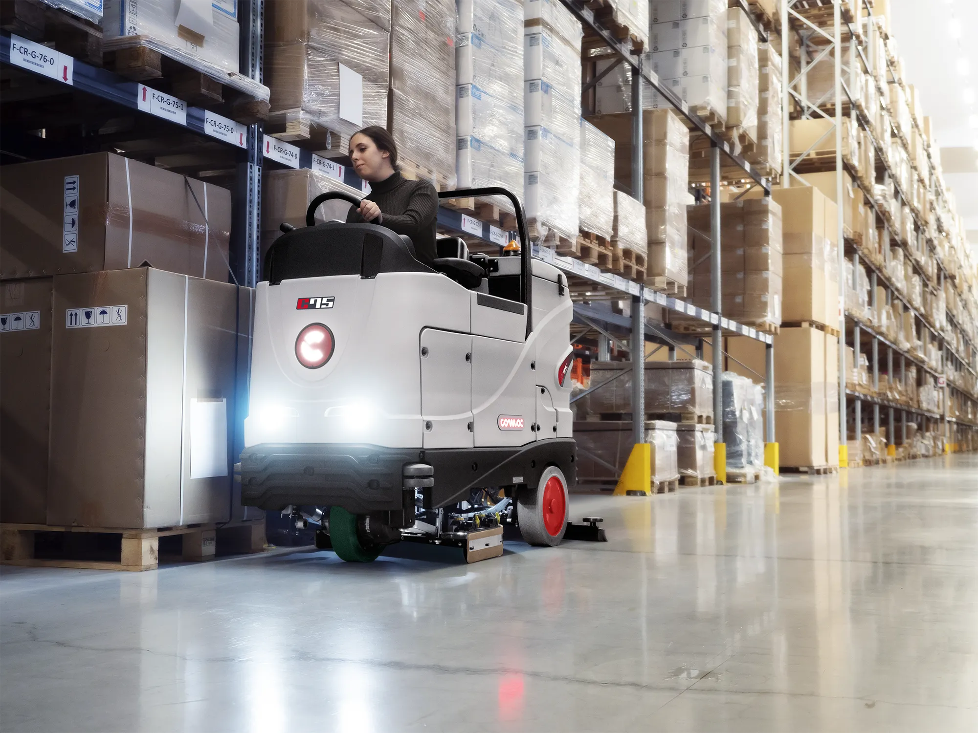 - Blue Safety Spotlight, które kieruje wiązkę światła na podłogę w celu zasygnalizowania z wyprzedzeniem zbliżania się maszyny do mycia podłóg, zwiększając tym samym bezpieczeństwo