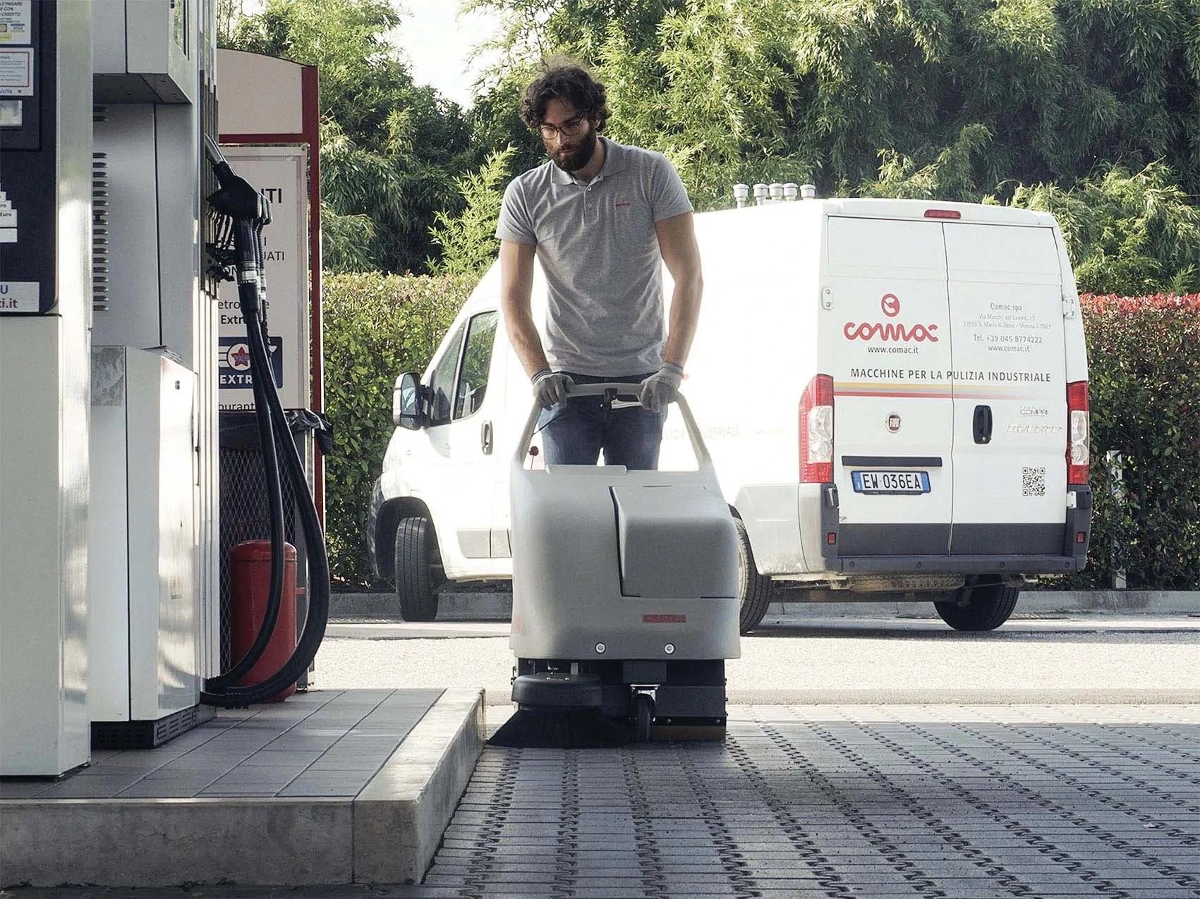 CS50 to mała zamiatarka prowadzona, która jest wyjątkowo zwrotna i łatwa w obsłudze. Doskonała wydajność i łatwość obsługi to główne zalety tej zamiatarki, które umożliwiają znaczne przyspieszenie procesu czyszczenia, a także upraszczaja pracę operatora.Do zastosowania na powierzchniach wewnątrz budynków jak i na terenach zewnętrznych o powierzchni do 2500 m², Comac CS50 jest idealnym rozwiązaniem do zamiatania ścieżek, garaży, parkingów, magazynów, znajdzie zastosowanie w obiektach z sektora logistyki, służby zdrowia, rzemiosła lub motoryzacji.